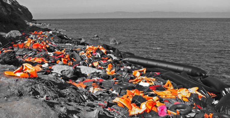 Two years later, I returned to Lesvos, this time as a reporter covering the refugee crisis that had exploded in the eastern Aegean. The international sea border I had previously ignored had become a geopolitical hot spot as day after day thousands of people risked their lives to cross it in order to reach Lesvos and other Greek islands—their entry point into the European Union and hoped-for asylum. It was a stunningly beautiful, but windy afternoon on October 28, 2015. Once again, I stood on the cliffs of northern Lesvos looking across the Aegean toward Turkey. But this time I saw flashes of orange out in the water—people in life jackets flailing in rough seas. There had been several refugee shipwrecks already in October, but from what I was hearing this one was catastrophic—an overloaded wooden boat carrying hundreds, sent by smugglers from Turkey, had sunk halfway across to Lesvos.
