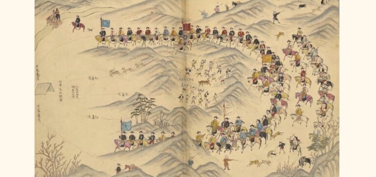 The hunts here were true spectacles: thousands of soldiers on horseback, armed with spears and arrows, converging twice a year in game drives. In one of the hunts, called a xingwei, horsemen armed with bows formed a vast semicircle to push wildlife ahead of them. This structure of the hunt gave animals the ability to flee if they kept their wits and moved straight ahead, but any caught in the confusion were surrounded and overwhelmed.