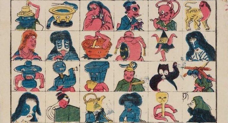 Later that trip, they visit the Museum of International Folk Art in Santa Fe, where she finds an exhibit on yōkai: the “ghosts and demons of Japan.” Shape-shifters, specters, and supernatural beings described as both “ghastly and comical.” There is an 18th-century parade-of-monsters scroll, a fairy-tale book titled “The Tongue-Cut Sparrow.” There’s an unnerving video installation of the wooden head of a smiling geisha that splits open to reveal horns and a massive set of pointed teeth.