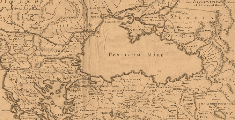 To the north of the sea lay the steppe, known there as the Pontic steppe in a nod to the Greeks. To the east lay the rugged peaks of the Caucasus, to the south the mountains and high plateaus of the Turkish peninsula or Anatolia, to the west the wooded hills of the Balkans and the Danube flood plain. Each was a world unto itself, but they met at the Black Sea, and whatever was exchanged between them could be ferried back deep into the interior via the great rivers that empty into it: not least the Don, Dnieper, Dniester and Danube. (Hold on to that recurring D, a linguistic tale to which we’ll return.)