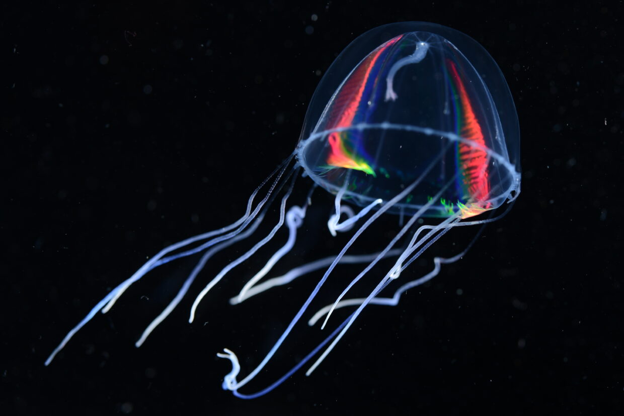 In the same way that eye lenses and corneas are composed of simplified tissues, many transparent ocean animals also fill much of their insides with gelatinous material or fluid. Many also make their bodies very flat, so the path through the inside is short. Some, like many jellyfish and swimming snails, consist of a thin layer of cells wrapped around a large nonliving ball of gelatinous material. They likely employ other tricks as well—we just don’t know yet.
