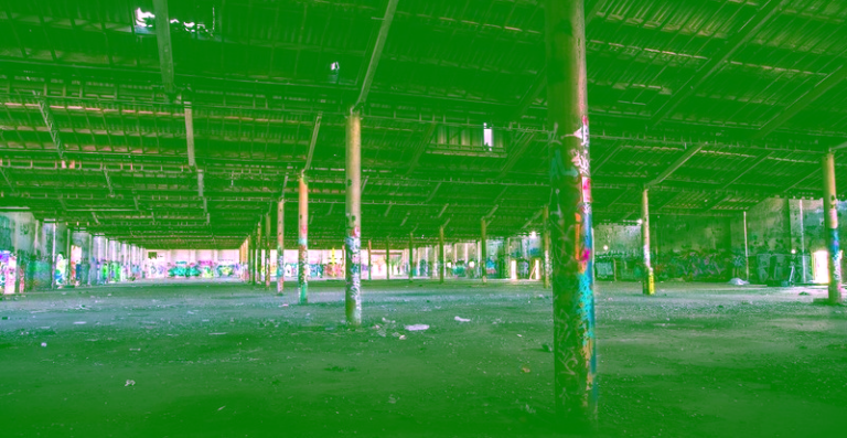 Going inside was inevitable. By then I knew it was a superfund. I’d taken environmental science classes, read A Civil Action, but my curiosity outweighed my common sense. One night a tall friend helped me find a hole in the floor of the scaffolding big enough to clamber to a second level, and from there we entered via a broken window.