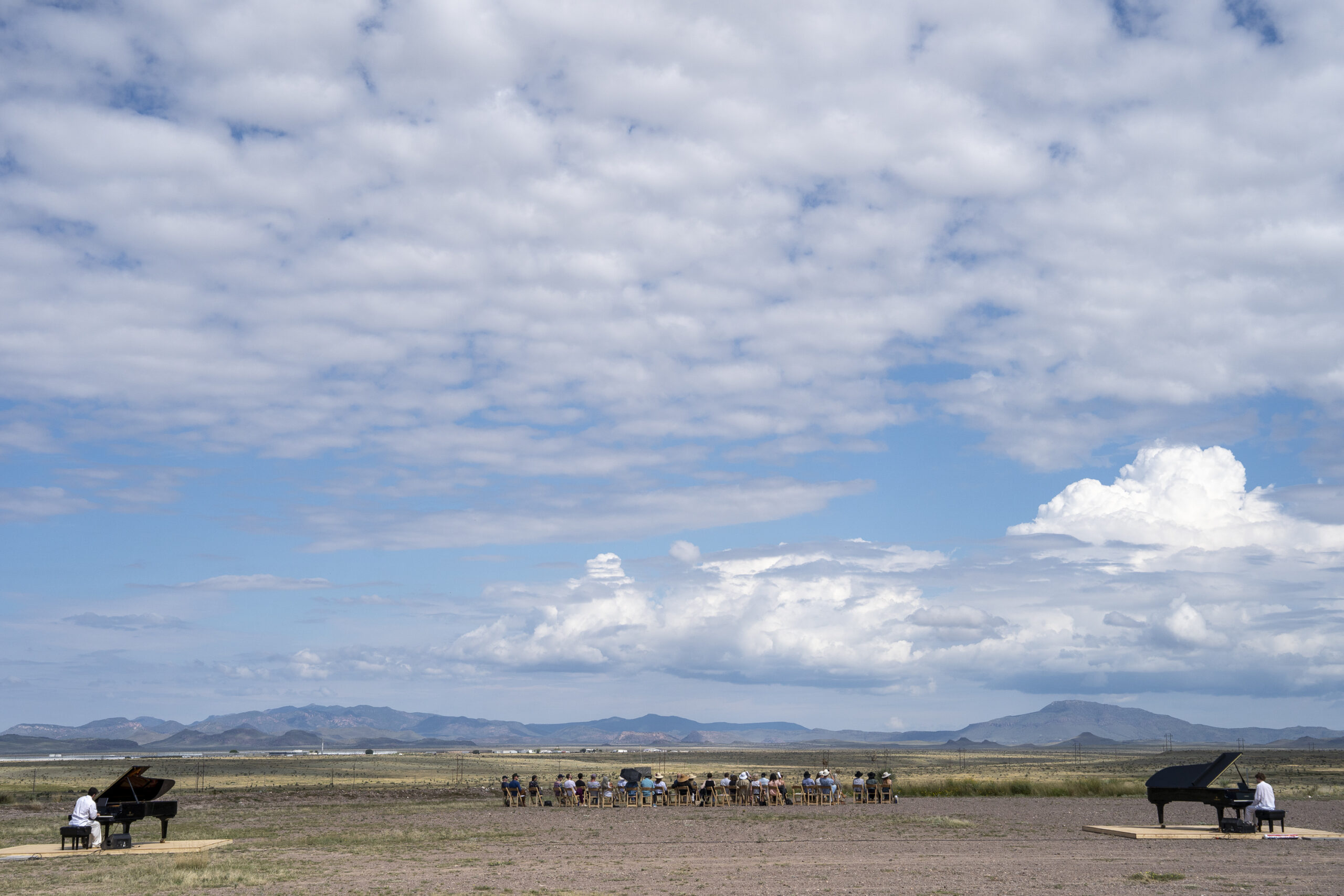 The tricky part of a performance like this is speed, the speed of sound itself. The time it takes for it to travel from one piano to another creates a delay, making it nearly impossible to play together. But also, the speed of the operation: to find a solution, we had to work fast, as the pianos heated up immediately in direct sunlight. All in all, the invisible—or “inverted”—concert, as Ballroom Marfa co-founder Virginia Lebermann called it, was the craziest thing we’d ever done. It was an act of complete trust in the terroir that had gifted us the idea.