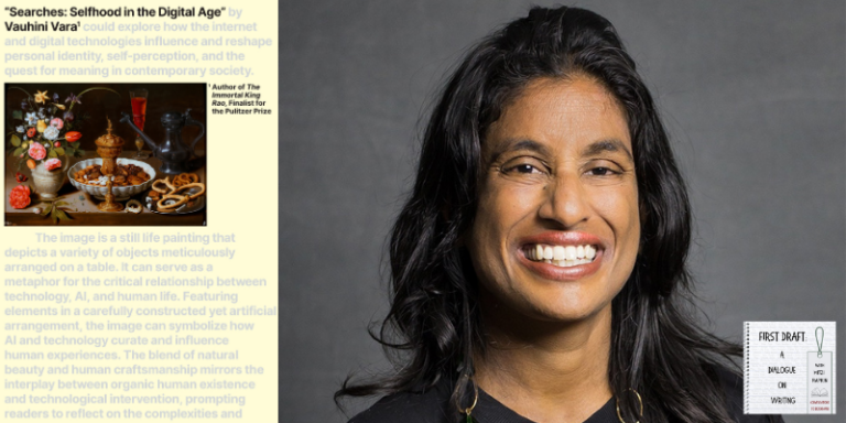 Vauhini Vara: I mean, that’s a wild card for me. I think we as writers can sort of talk all we want about what AI doesn’t accomplish for us, like I was doing earlier, and talking about trying to write an essay using AI and finding it all fell short. That’s all well and good. But ultimately, books are products by the time we put them into the world, and in order to have careers as writers, there needs to be people willing to read those books, and not just to have careers, in order for the art, I would argue, to exist, it needs to be co-created by a reader and a writer. That’s where the magic takes place. If I write a book and nobody reads it, you know, there’s something incomplete there in the in the work itself. And so given that, it is incumbent upon readers to decide, again, what is valuable to them about literature. And I think this is where my husband’s proposed conception of literature as necessarily being human created is valuable because if readers decide, listen, knowing that there is a human being on the other side of this text, knowing that what’s happening here is a communication between me and whoever wrote these words down is fundamental to my experiences of reading. If readers decide that, then this AI thing is a non-starter, then AI doesn’t matter. However, if readers decide it’s all about the text on the page; I don’t care where that text came from. As long as it’s entertaining to me, compelling to me, even moving to me, then you know, that becomes an existential problem for us as writers and for us as a literary society. The AI model I used to write that essay Ghosts didn’t convey my experience, but I did argue in the book that the AI model did produce text that I found very moving at times. And so how do I square that as a reader with my desire for literature to be human created? What does it mean that I as a reader read some of the text that the AI model produced and thought like, wow, this is really beautiful. What if that’s enough? The question is, what it enough? And I would like for the answer to be no, but that it’s not for me to say.