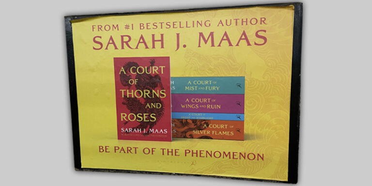 Lately, I’ve been waiting underground while surrounded by these bright Court of Thorns and Roses ads: